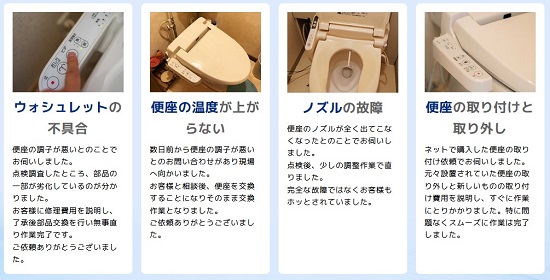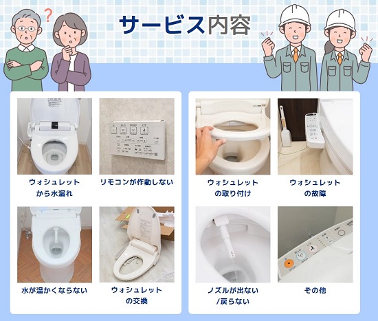 所沢市で対応可能な温水便座、ウォシュレットの修理サービスとなります。その他のトラブルやご相談に関しましてはお気軽に受付窓口までお問い合わせください。